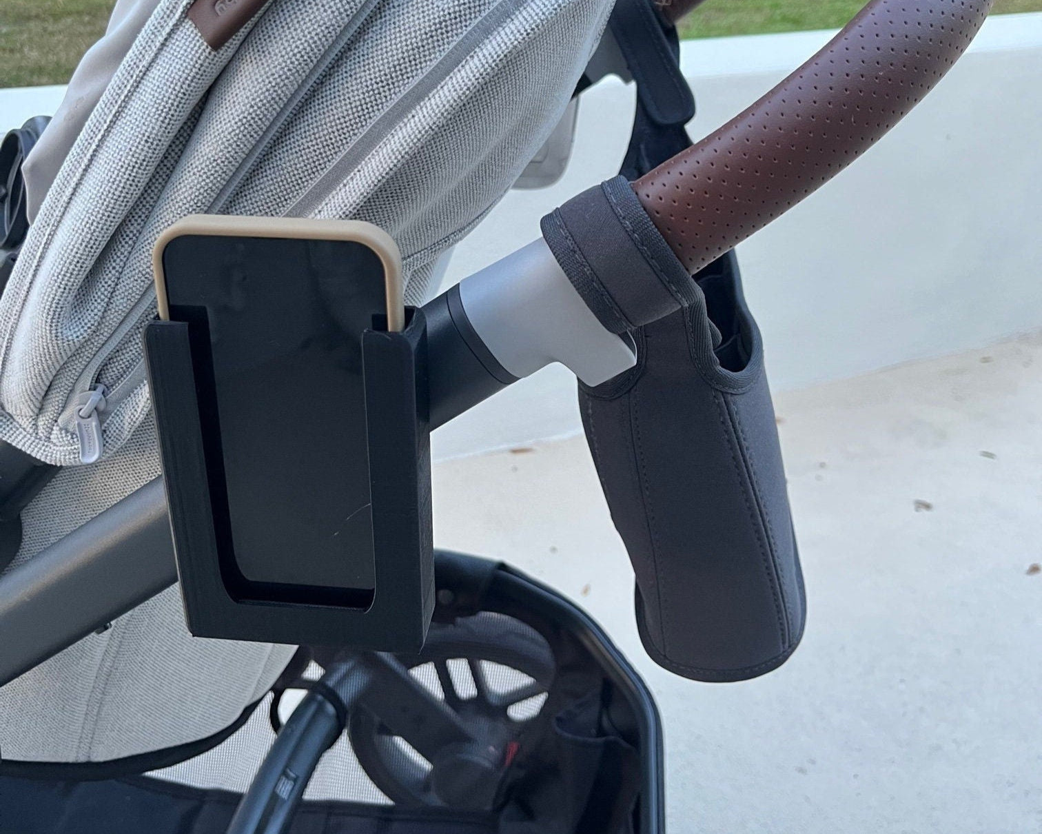 This phone holder is designed specifically for UPPAbaby Vista, Vista V2, and Vista V3 strollers, snapping quickly and securely onto the stroller frame.